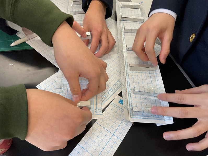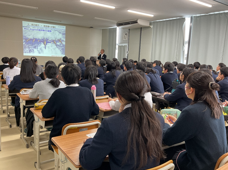 12月11日(木)に、一般社団法人中部航空宇宙産業センターの伊藤一宏氏をお招きしました。前半は航空機の安全性や次世代の空飛ぶクルマなどについての講義を受け、後半は工作用の紙だけで強度のある梁をつくる課題にチャレンジしました。講義や体験を通して、航空分野の学びを深めることができました。