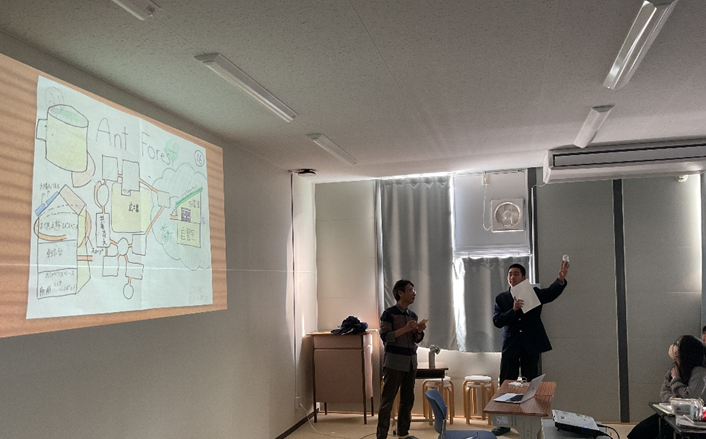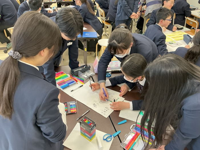 3月12日(木)に、名古屋造形大学の蜂屋景二教授による第3回目の講義を実施しました。これまでの学習の集大成として、生徒が考案した「サステナブルなアイデア」をグループごとに発表しました。発表後は、それぞれのアイデアに対して蜂屋教授から助言をいただきました。